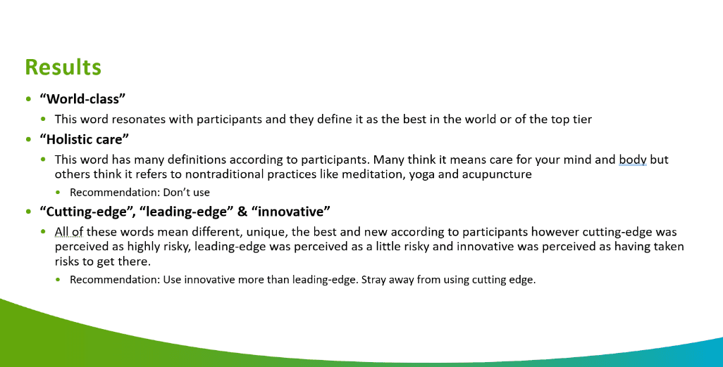 Our main navigation was limited by space, so my first step was to clarify how users naturally expected content to be grouped. My research questions focused on problem areas we already suspected: Did people see clinical trials as research? Where would they put screenings? What did they think “programs” meant? And since we knew we’d need at least one new category, what should it be called?